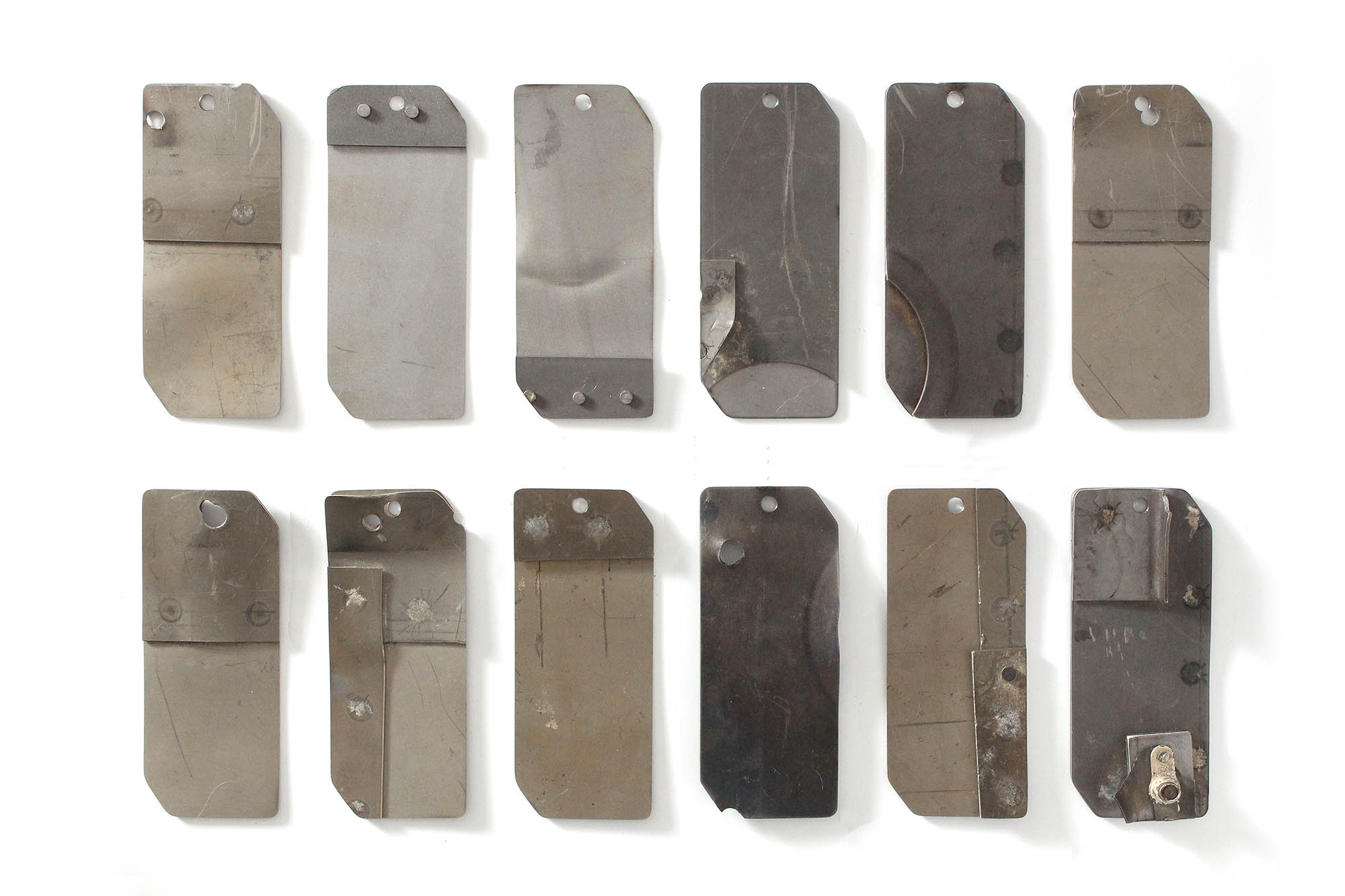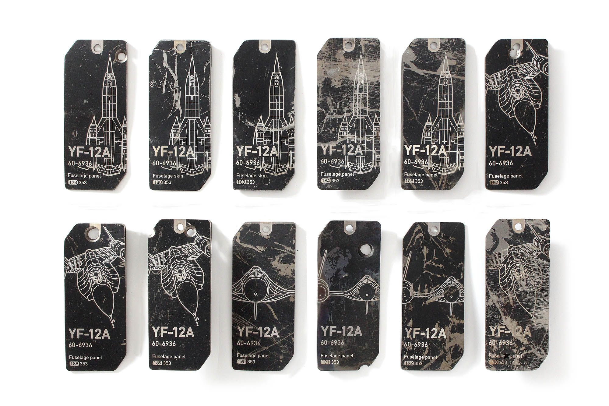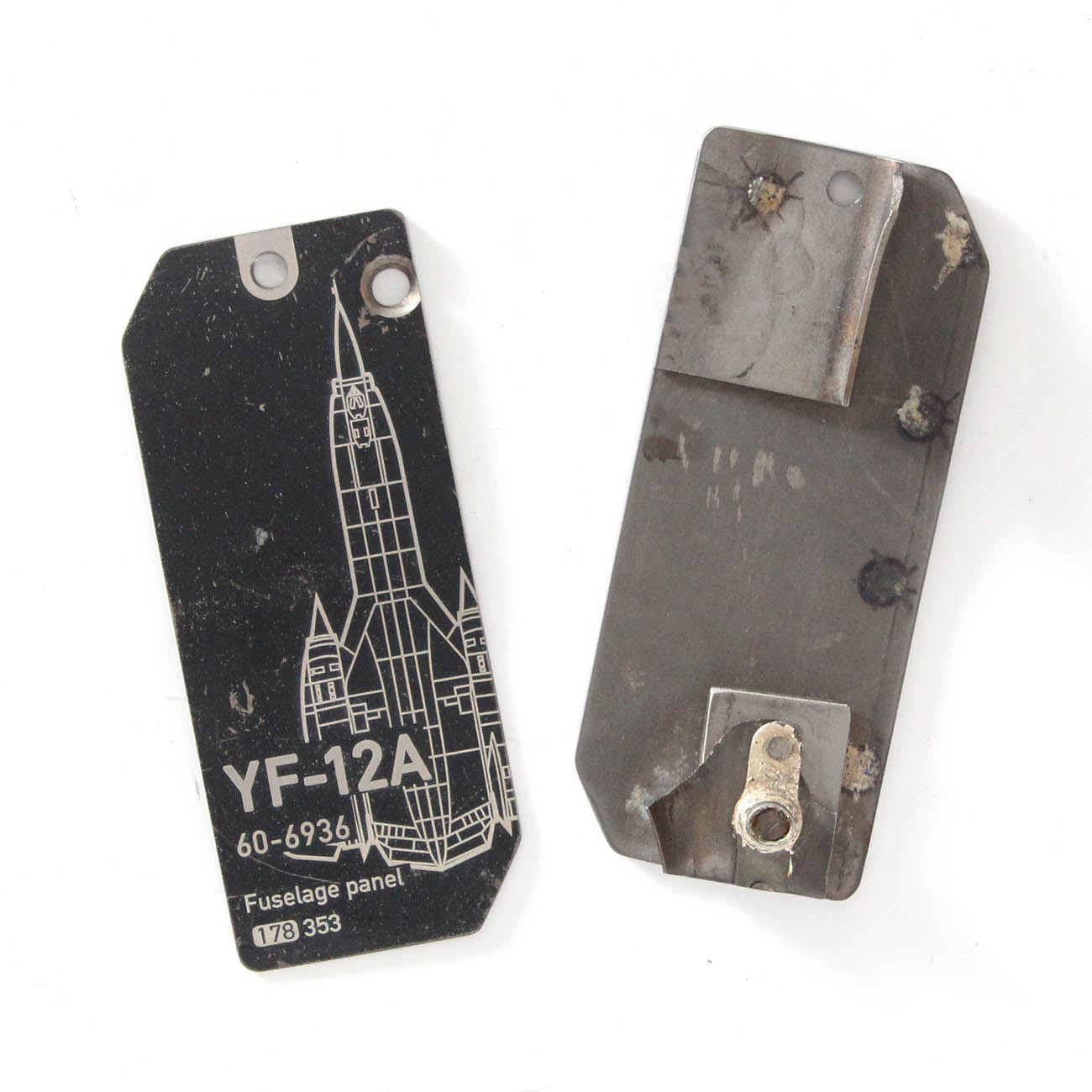 Panel/skin tags with minor structures were cut from piece of a fuselage skin or an access panel removed from YF-12A, s/n 60-6936. All tags in this variant feature additional structural elements. In some cases, a second sheet is spot welded onto the back side, while in others, several small pieces are riveted or welded onto the tag.