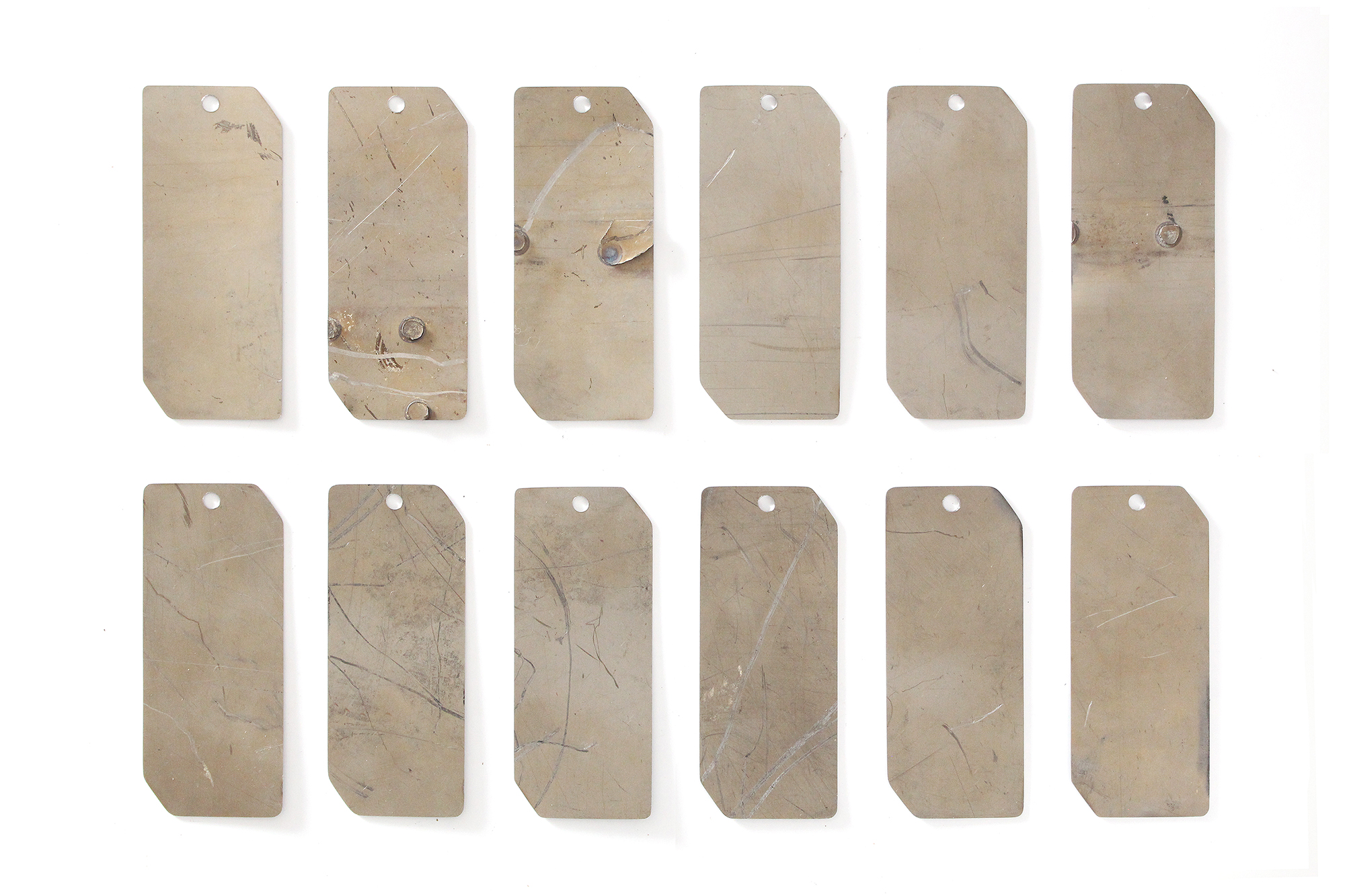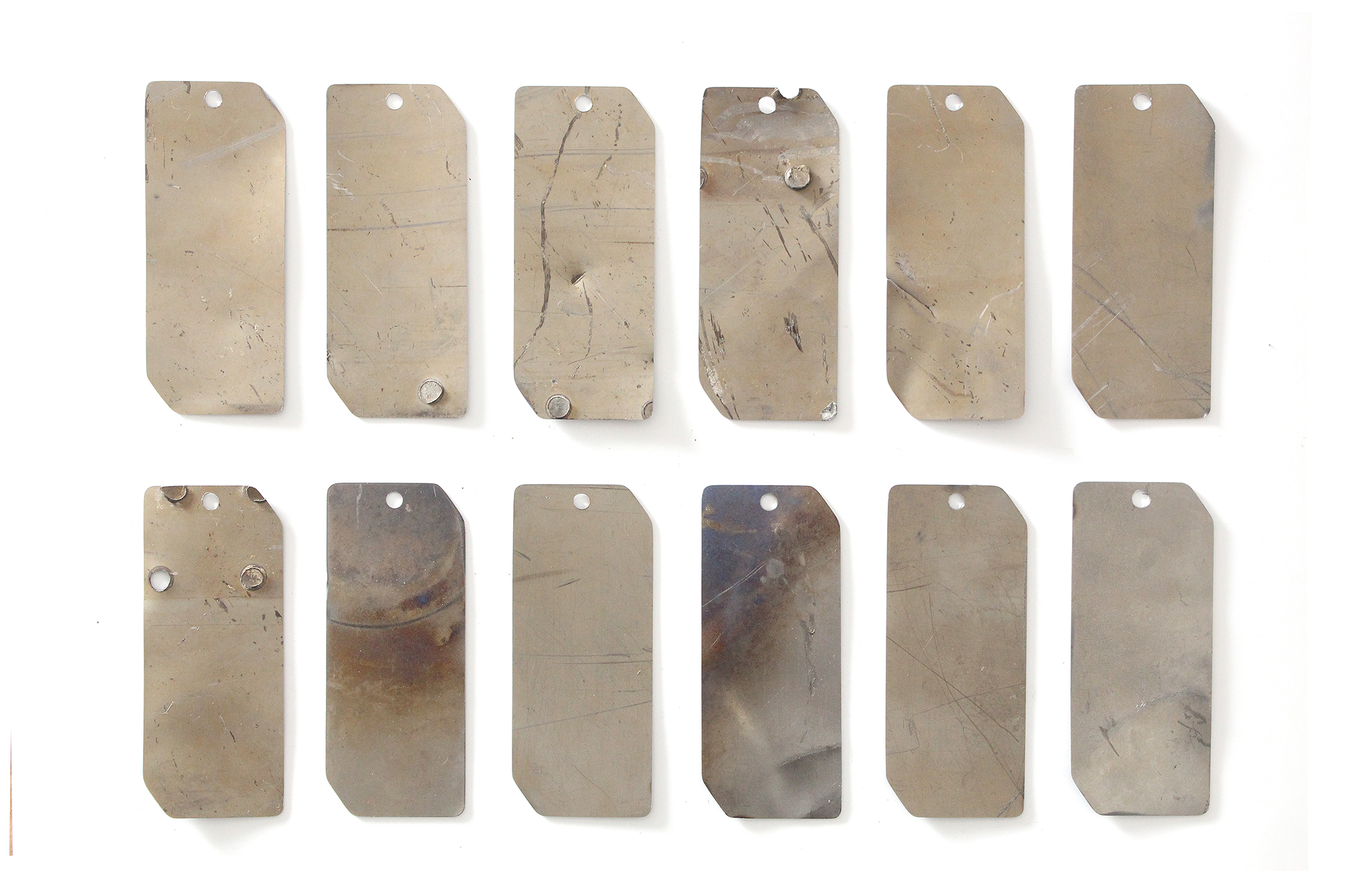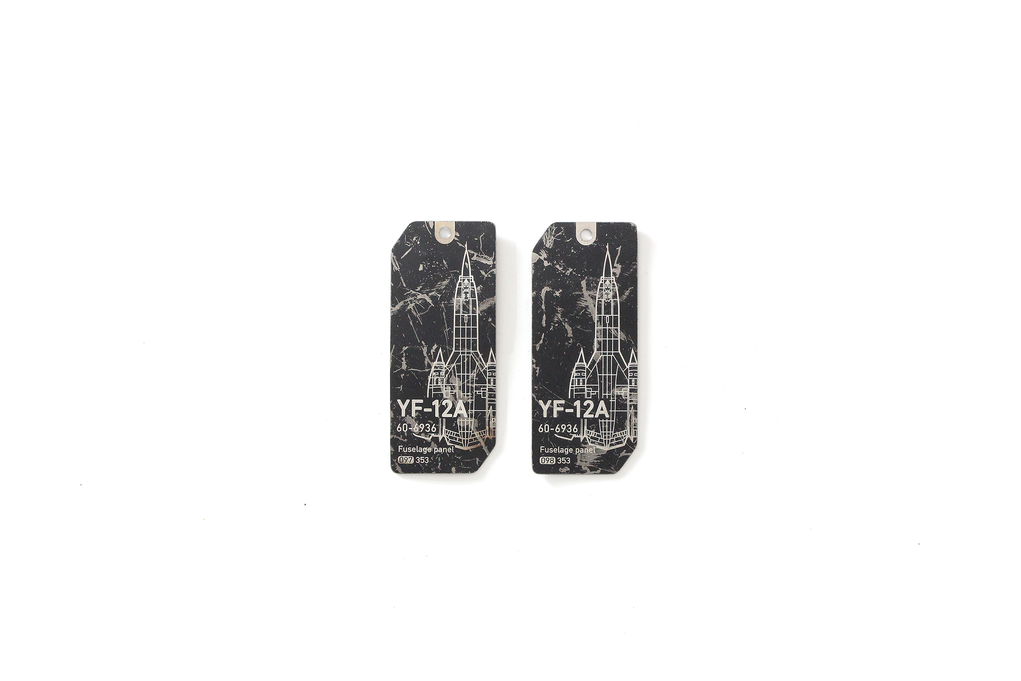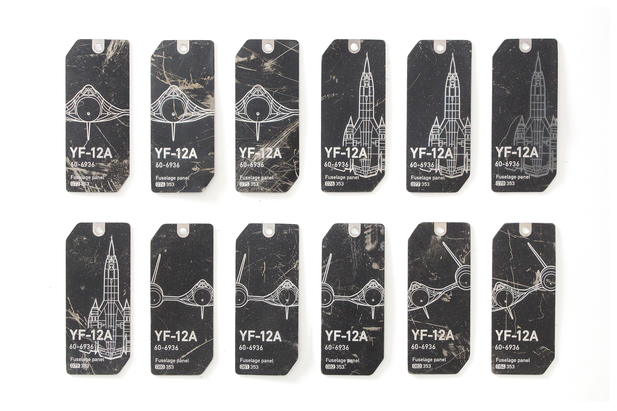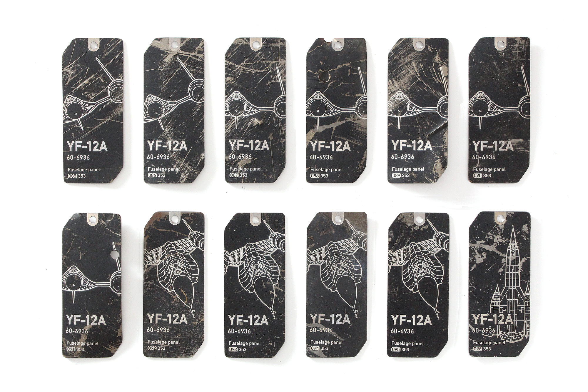 Thin titanium fuselage panel tags were cut from an outer panel section of the YF-12A, s/n 60-6936.